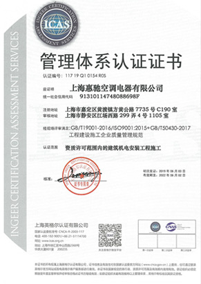 國家建筑企業(yè)資質(zhì)認(rèn)證 ISO工程質(zhì)量認(rèn)證 上海市空調(diào)安裝協(xié)會會員 生產(chǎn)改造安全許可證 國家三A級信用企業(yè) 上海冷凍協(xié)會會員